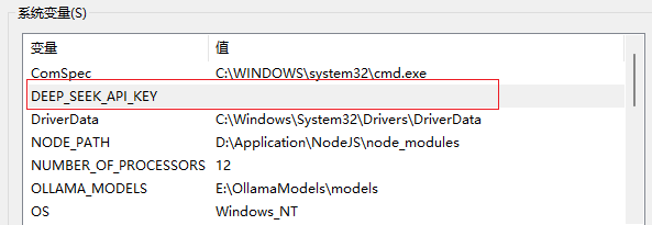 为了apikay的安全,建议将其配置在服务器的环境变量中,变量名自定义即可,如 DEEP_SEEK_API_KEY: