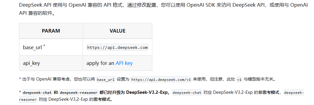 点击 这里 访问DeepSeek接口文档,首次调用需要进行设置: