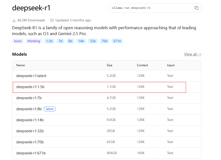 | C:\Users\gutsy>ollama list NAME ID SIZE MODIFIED deepseek-r1:1.5b e0979632db5a 1.1 GB 4 months ago qwen3:1.7b 8f68893c685c 1.4 GB 4 months ago